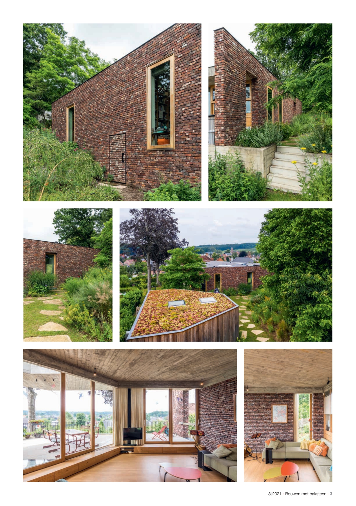 De baksteenmuren spelen een speciale rol in de architectuur van het project. Ze vormen zowel een beschermend scherm als een structurerend element voor de inrichting van de woning midden in de tuin. DMOA-architecten versterkten de indruk van tuinmuren met hergebruikte bakstenen (veldoven recuperatiestenen). De massiviteit van de wanden wordt geaccentueerd door een uitvoering in wild verband met een donkere dunbedmortel met dieperliggende voegen.